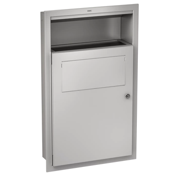 Ścienny pojemnik na odpady z zapadnią i zamkiem Inox 16 litrów Pojemnik z zapadnią na zużyte ręczniki papierowe i papier Delabie 6612