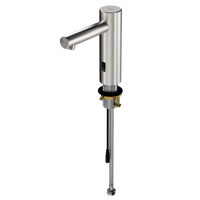 - F5E-Mix Bateria umywalkowa DN 15 z ukośną wylewką do montażu na zestawie armaturowym lub osobnym przyłączu ściennym, do umywalek. Sterowanie optoelektroniczne, uruchamianie poprzez zbliżenie dłoni do czujnika odbiciowego. Podłączenie do ciepłej i zimnej w